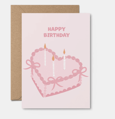 Make their birthday extra special with this cute coquette-inspired card featuring a pink vintage cake. Perfect for a stylish celebration!