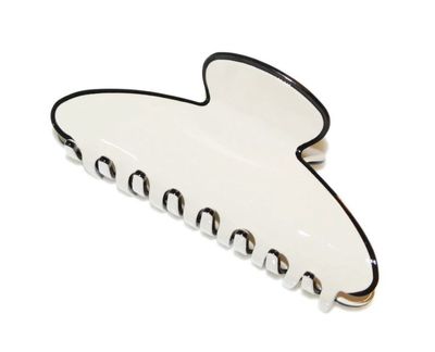 A simple, stylish, two-tone claw perfect for everyday wear, this acetate claw measures approximately 10.5cm x 4.5cm, and will hold all day yet is gentle on your hair.
